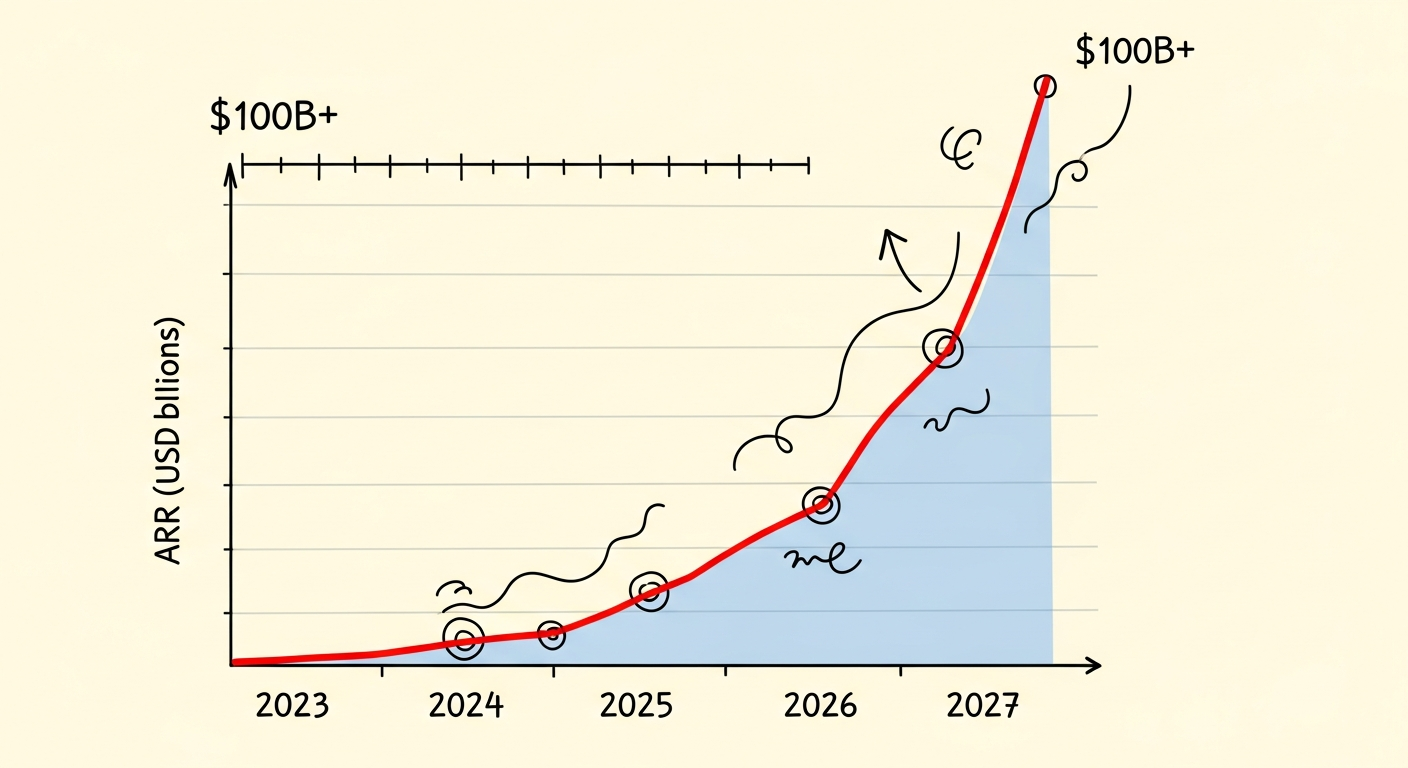 Prediction 1 (High confidence): AI company revenue will exceed $100 billion ARR by December 31, 2026.