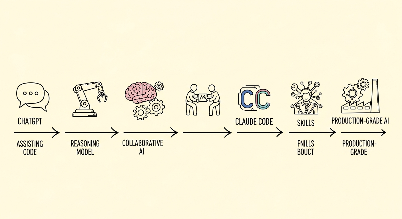 October 2025 - Skills. Claude Code added skills—reusable best practices from senior engineers. Suddenly I wasn't just coding. I was coding like someone with 20 years of experience. Test-driven development. Proper error handling. Architecture patterns I'd never learned.